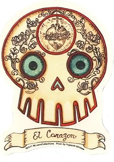 Maryann Luera - El Corazon Loteria Day of the Dead etiket Sticker - 3.75 x 5" - Weather Resistant, Long Lasting for Any Surface