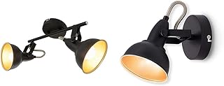 Briloner Leuchten 2049-025 Deckenleuchte, Deckenlampe mit 2 dreh-und schwenkbaren Spots im Retro/Vintage Design & 2049-015 Wandleuchte, Wandstrahler mit dreh-und schwenkbarem Spot im Retro/Vintage