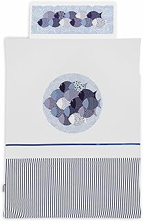 Sango Trade BETTWÄSCHE 2 Tlg. für Kinderwiege Bettdecke und Kissenbezug Set Größe: 90 x 120 cm Baby Bettwäsche - Fische Bettwäsche Set Baumwolle handgearbeitete