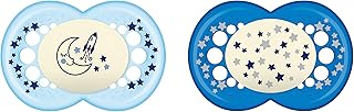 MAM Original Night Schnuller im Doppelpack, leuchtender Baby Schnuller, besonders weicher Baby Schnuller für schnelle Akzeptanz mit Sterilisier-Transportbox, ab 6-16 Monate, blau