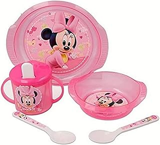 Disney Minnie Maus Paint Pot Micro Easy Baby, 5-teiliges Set (Teller, Schale, Trainingsbecher und 2 Löffel)