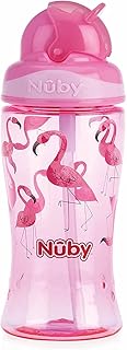 Nuby Designer Series No Spill Flip N' Sip, Becher mit zwei Griffen und beschwertem Strohhalm, 255 ml. Menge: 1. Farben können variieren.