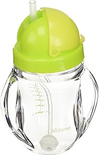 Kidsme KM9876LI Trinkbecher aus Tritan mit selbststabilem Strohhalm, Limettengrün