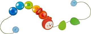 Haba 303756 - Kinderwagenkette Raupe | Wagenkette mit Holzelementen in Regenbogenfarben und niedlichem Raupenkopf | Baby-Spielzeug für den Kinderwagen