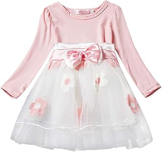 Baby Mädchen Kleid 6M - 4T Gaze Tutu Prinzessin Kleider Kinder Säugling Partei Blumen Tüll Rock Langarm Bowknot Nette Gestrickte Baumwolle