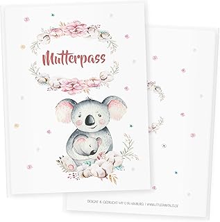 Mutterpasshülle 3-teilig Niedliche Tiere, Mutterpass Hülle, Schöne Geschenkidee für Babyparty (Mutterpass DE personalisiert, Koala)