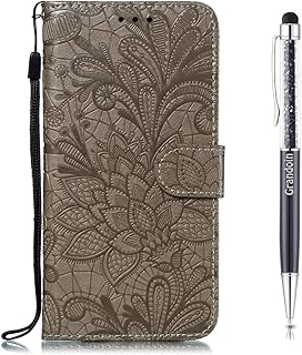 Grandoin Hülle für iPhone XR (6,1 Pouces), PU Leder Etui Flip Cover Book Case Prägung Muster Schutzhülle Handytasche Handyhülle [Ständer Kartenfach] [Magnetverschluss] (Grau)