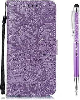Grandoin Hülle für Motorola Moto G8 Power, PU Leder Etui Flip Cover Book Case Prägung Muster Schutzhülle Handytasche Handyhülle [Ständer Kartenfach] [Magnetverschluss] (Lila)